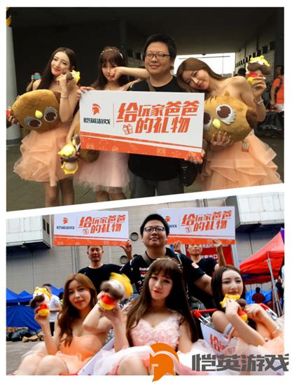 在营销第一步“玩家爸爸”主题神曲MV一炮而红之后,恺英游戏紧接着就将目光放在了与玩家之间的互动中。邀请国内知名Showgirl,携手徐Cake为玩家爸爸送女神大礼,礼物送出的包装——购物车成为了这一轮玩家爸爸送大礼的最大亮点。而凭着购物车与女神相交叠的新颖,在全网直播的推动下,恺英游戏也成功收获了本届ChinaJoy用户的最高关注度。美女被购物车推走的时候引发了大量玩家爸爸驻足围观,甚至还出现了最嫩玩家爸爸——一个五六岁的小朋友主动上前推车随后更主动亲吻showgirl。这个有趣的小插曲,也让玩家们看到恺英游戏展台的无限魅力。