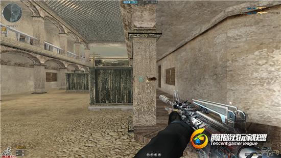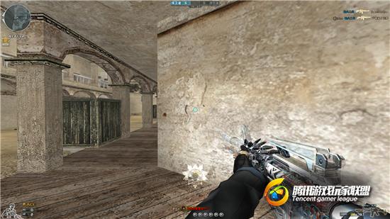 如上图地图中所示,不能穿透的箱子和高柱是闪身打法的理想掩体,但是也要注意四周,防止对方绕到身后偷袭。在发现敌方多数士兵时,如果枪法不是太硬,就要利用身边的障碍物实现闪身,退到掩体旁,手指放在“A”,“D”两键之间,出来时,按住“D”,朝着目标射击,接着快速回键,按住“A”,循环往复。