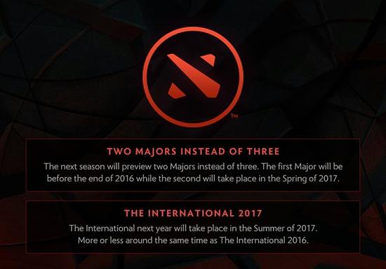 此外,V社还宣布TI6之后将会取消一届Major,一个Major在2016年底,一个在2017年春季。TI7会在明年夏天举行,具体时间与TI6差不多。