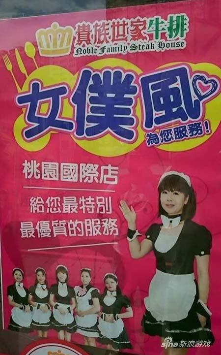 台湾桃园餐厅贵族世家牛排推出的“女仆风”——
