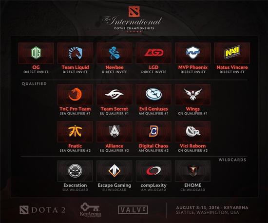 本届TI6强队云集,中国区将会有LGD、NEWBEE、WINGS、VGR、EHOME五支战队将远征西雅图。其中LGD和NEWBEE战队直接获得了邀请,WINGS和VG.R战队通过了自己的出色发挥在小组赛中分别排名第一第二获得了此次国际邀请赛的门票。而EHOME战队则是拿到了中国区的外卡名额,与这四支战队携手共赴西雅图。