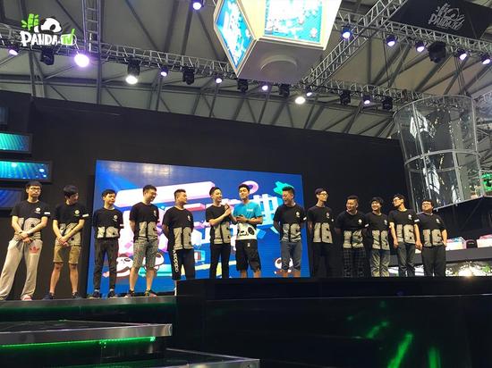 接下来的守望先锋比赛还没开始,熊猫TV的展台就被围得水泄不通了,为什么?叫兽易小星、熊猫TV美女主播阿瑾,与炉石打的手感正热的王师傅、sol君、瓦莉拉组起了明星队,对阵现场水友。虽然没有职业选手,但也正是因为没有职业选手,所以我们日常游戏中各种逗逼操作都一一还原在了游戏中,像坠崖、开大被秒、找不到谁打自己,这些状况都逗的观众合不拢嘴。
