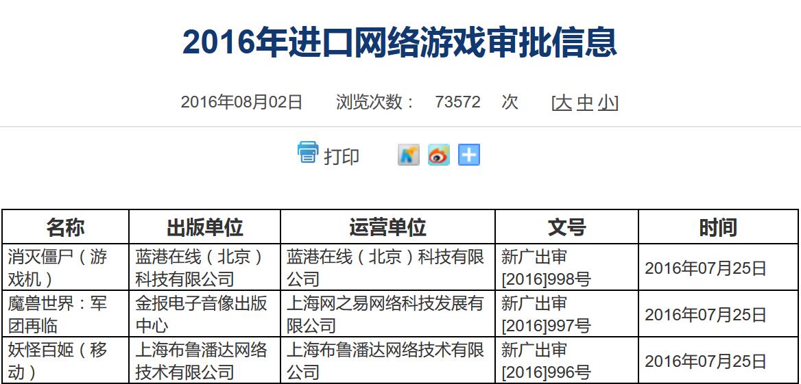 31日李日强在发布会上宣布魔兽世界新资料片将于9月1日全球同步上市以来,玩家唯一的担心就是一直没有过审的关系了,今日国家新闻出版广电总局公布了军团再临资料片过审的消息。