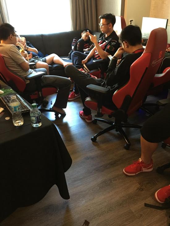 因为时间仓促没有拍全,国外战队的和EHOME的明天找机会补齐。来到LGD的门外时我们探班了下LGD的战队,那会正好是拍完定妆照回来,小组赛分组出来以后领队正在忙着约队训练,xiao8和香蕉都在等待着天梯匹配,霸气则在认真的回顾录像,即使受到了签证的影响,LGD还是有条不紊的在备战,相信他们仍旧能够取得优秀的成绩。