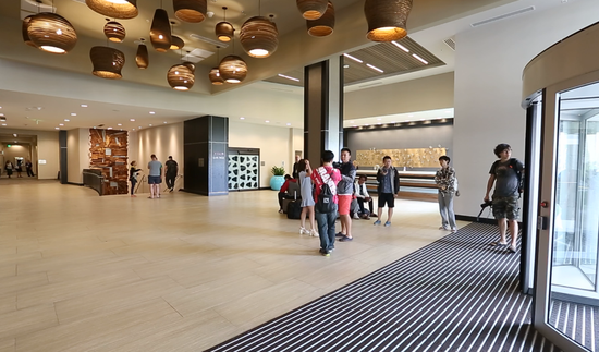 从场馆内的公告牌上看小组赛并没有开放观众观战,包括现场媒体,所以就连选手除了比赛之外应该也不会在场馆内逗留太久,毕竟走两步就回自己的训练房了。这次的酒店是贝尔维尤的万豪,店如其名,豪都写在了招牌上了自然不会差太多。进门以后就是到地下一层的楼梯,直接能够通往这次赛事的餐厅。因为马尼拉特锦赛所在的酒店是一座旅游城市里的度假酒店,所以饮食方面已经做到登峰造极了,这次就比较传统,没有太多特色但也不会失色。
