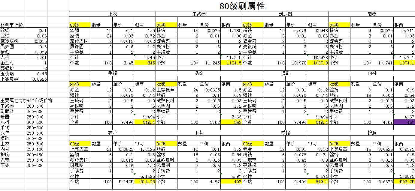 通过上面表格数据分析,刷内衬成本是最低的(数据来源天命风流千秋月服务器),所有数字的单位都是以金为单位。当然如果只刷内衬也不能达到好的利润,因为 一件装备大家都做多了,也就整体降价了,建议刷护腕、下装、内衬。刷出的属性只要是每个职业的主要属性其实每个部位价格都差不多,所以用低成本刷附魔赚钱更实惠点。