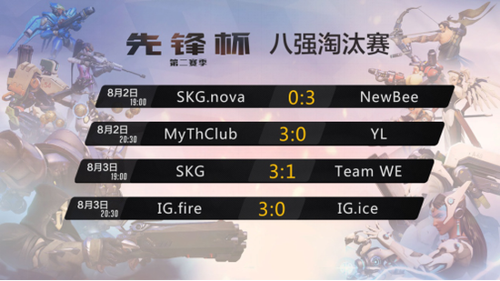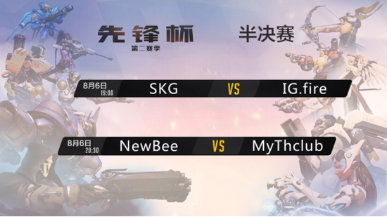 至此,“先锋杯”第二赛季四强已经全部产生。上半区MyTHClub将面对士气正旺的NewBee,可谓是旗鼓相当。下半区SKG和IG.fire狭路相逢,究竟谁更勇猛?最后一次的短暂调整后,8月6号和7号,我们一起见证最后的尾声。
