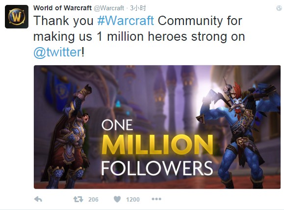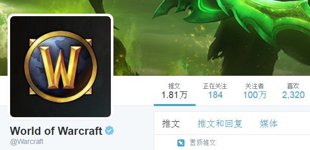 今天,魔兽世界官方在推特上发了贺文,庆祝魔兽官推100万粉丝达成,真是可喜可贺了。