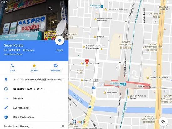 这些让定位更加准确的工具对于要去秋叶原这样商场密集如迷宫般的地方就非常适用,能让你锁定自己要去的某一特定商店和游戏厅。这些功能对于觅食也是非常重要的,软件可以给你提供宝贵的建议。