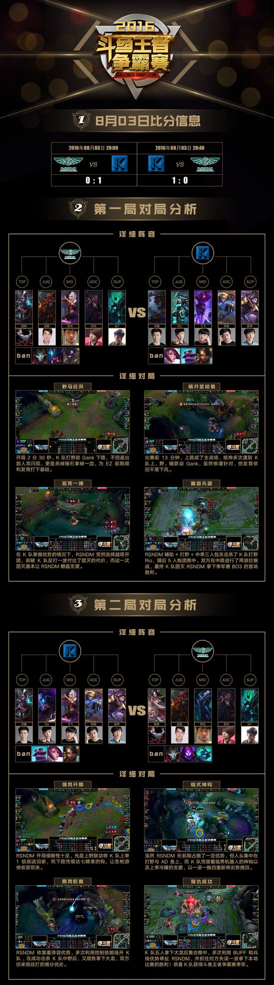 RSNDM在半决赛遭遇失利后,K队似乎发现了他们的弱点,从稳扎稳打的运营风一下子突变为疯狂针对上单的战术,两局比赛RSNDM上单没有享受过片刻的宁静,少则2人多则3人包夹的战术,完全压制住了炫神,失去节奏点的RSNDM很快就败下阵来,输掉了两局比赛。