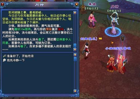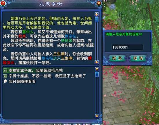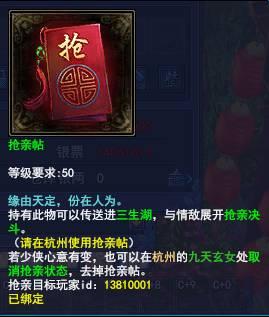 领取抢亲帖,发起抢亲。报名费是1万银两。