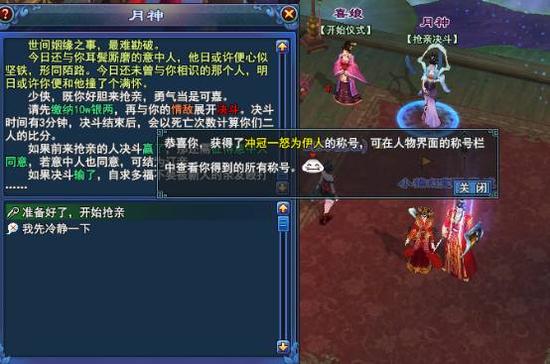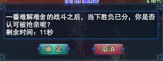决斗时间有3分钟,决斗结束后,会以死亡次数计算你们二人的比分。如果前来抢亲的人在决斗中赢了,那抢亲者的意中人会收到选择:
