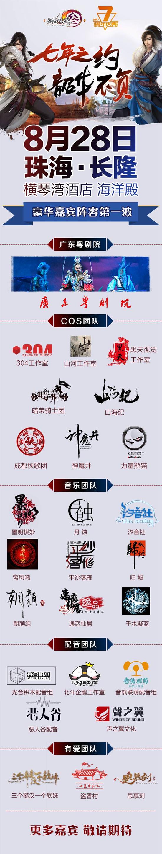 同时,本次发布会还设有红毯环节,广东粤剧院也将带来全新力作。主持人团队由ACG圈一线男神女神杀漠、鬼月、龟仙人、黑石稔联合担任;COS团队由国内顶尖的山河工作室、黑天视觉工作室、304工作室、暗荣骑士团、山海纪、神魔井、成都秧歌团、力量熊猫等联袂出席。音乐团队由墨明棋妙、月蚀、汐音社、鸾凤鸣、平纱落雁、归墟、朝颜组、逸恋仙居、千水凝蓝九大团队加盟,他们曾给侠士带来诸多古风音乐盛宴!配音团队中,有光合积木配音组、北斗企鹅工作室、音熊联盟配音组、恶人谷配音和声之翼文化强势登场,并在《剑网3》的端游、手游和其他周边作品中献声。此外,知名视频团队三个糙汉一个软妹、盗香村、思慕刻也将来到现场。