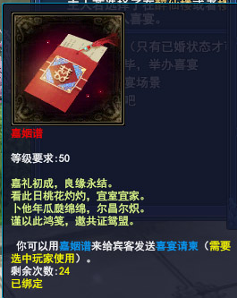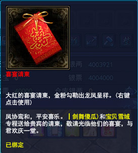 宾客会获得绑定的喜宴请柬,在喜宴开启后可以传送进喜宴场景。