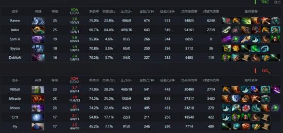 紧接着TNC在虚空的一次失误大的情况下,拿下了带奶的肉山盾,OG又拿回了主动权。但场上的局面仍然十分的紧张,终于59分钟TNC组织一波推进虚空再一次完美大,配合队友的输出,将OG击败。恭喜TNC进入下一轮。