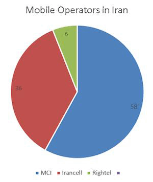在伊朗有三个主要的移动运营商:伊朗移动电信公司(MCI)、Irancell和Rightel,这三家运营商均能为他们的客户提供3G和4G的网络服务。据通信和信息技术部最新报道,这三家运营商的活跃用户达7000万。伊朗预计,截止至2017年3月(伊朗当地时间),智能手机市场的用户将有4000万。