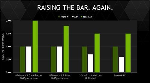 Tegra X1是2015年推出的移动处理器,最早被应用在Shield TV上。Tegra X1拥有4个ARM Cortex A57和4个ARM Cortex A53 CPU核心,256个Maxwell 2.0架构的GPU核心,32位浮点运算峰值是512GFLOPS 。相当于XBOX 360的2倍,比WiiU的352GFLOPS稍强。《三位一体2》这个游戏在PS3和XBOX360上能以720P30帧的表现运行,在X1上能跑到1080P30帧 。