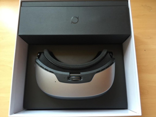 这款大朋VR一体机型号为M2,从产品包装来看非常用心,整机平放在带凹槽的海面上,避免运输或携带途中出现破损。所有耳机配件、USB线等收纳在长条纸盒中,看起来非常整洁。