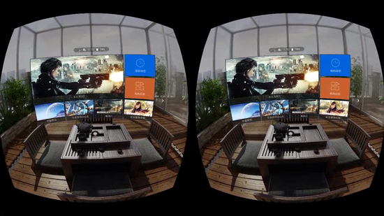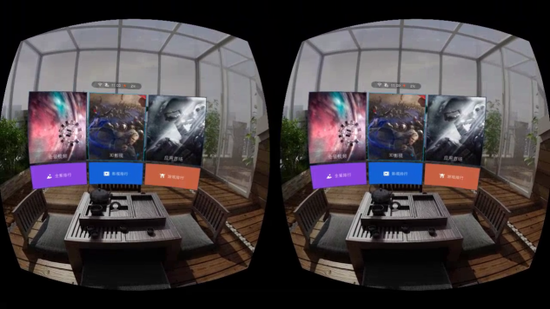 启动大朋M2后,首先映射在屏幕上的是大朋的logo,随后进入操作界面,从启动到操作界面的时间大约18秒左右,启动时间比上一代有所提升。默认操作界面背景设定在一间玻璃房内,整体风格居家休闲,让人很放松。不过,如果要更换背景的话,在设置中并未找到相关选项。