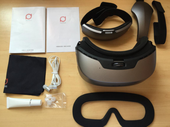 盒子里面的主要设备和配件有:大朋M2整机一台+顶部、主头带,充电器+充电线一根、Micro USB线一根,说明书、保修卡各一份,擦镜布一张,镜片专用清洁剂一支,耳机一副(含各规格耳塞),眼部四周可更换海绵。且不说耳机这些必备的配件,其中还包含了擦镜布、清洁剂、可更换眼部海绵等,可见大朋在一些细节部分还是下了一番功夫。