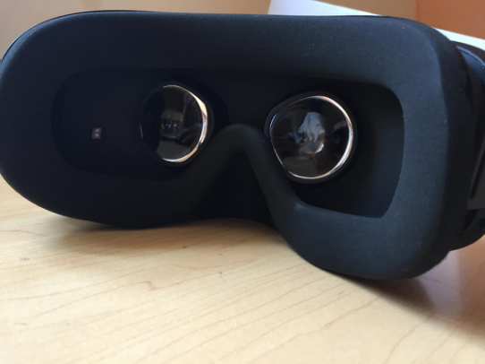 为适应近视用户,在眼镜上方有物距调节轮,可以调节焦距。VR陀螺的小伙伴500度近视使用起来完全没问题,所以能适应的范围还是比较大的。不过大朋VR一体机不支持瞳距调节,跟上代产品E2一样采用自适应方案。