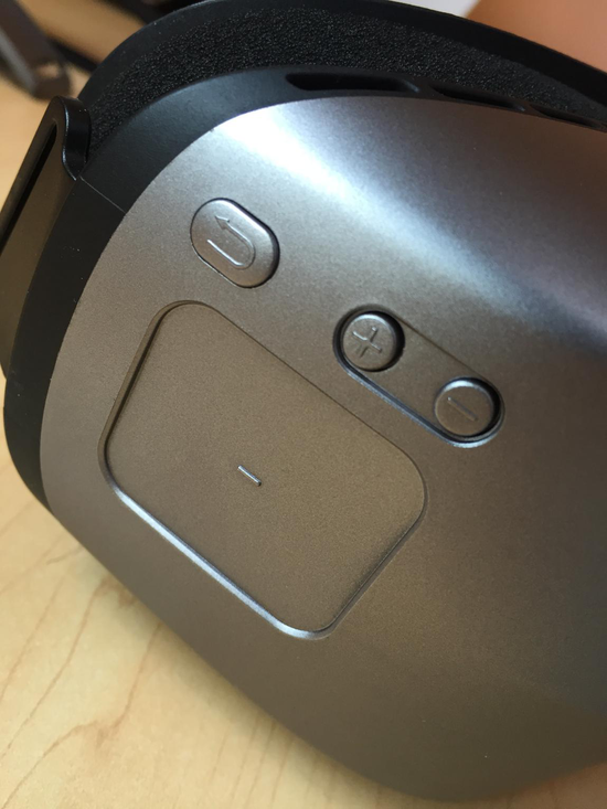 眼镜正前方有一个指示灯,当启动一体机后会出现蓝色的光条,和银灰色的机身非常搭。