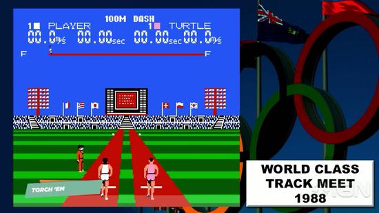 欧版译名《体育馆赛事》,曾在美国出现过很短的时间,后北美版改名为《世界级田径运动会(World Class Track Meet)》,日版则名为《田径体育场(ランニングスタジアム)》。作为任天堂家用娱乐系统(红白机)在1987年发售的一款短命的外接设备——超能垫(Power Pad),欧版叫作家庭趣味健身垫(Family Fun Fitness),日版名为家庭健身垫(Family Trainer)的同捆游戏发售,该游戏被认为是第一批最早的运动健身型游戏之一。