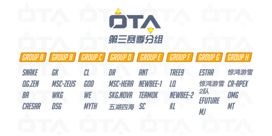 赛睿OTA守望者联盟战队赛第三赛季职业A级32强分组公布: