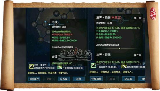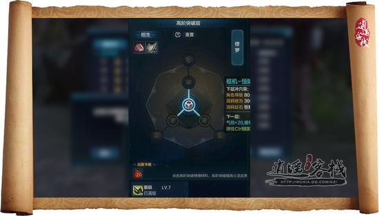 修罗突破成紫色心法需要20张修罗心法注解,先从6重突破至高阶突破层,高阶突破只有6个紫色砭石槽,并且以后的七重八重都不需要金色砭石,以此看来,修罗突破后的属性并不能比得上原有的紫色心法,不过可以完爆所有蓝色心法是肯定的。据玩家分享点满8重共需要4000W修为的。