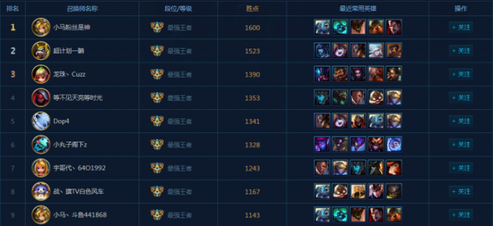 ID:小马粉丝是神 排名:国服第一,最强王者1600点