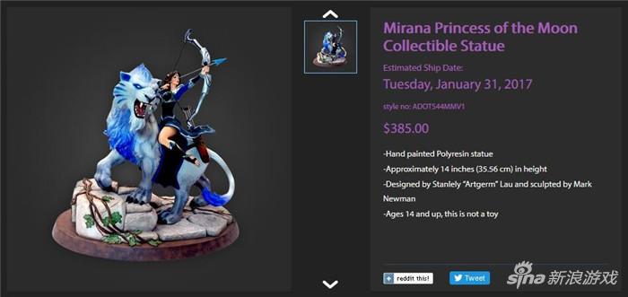 目前,网站已经开放预购,手办将于明年1月31日正式发售,购买这款手办的玩家可以在《DOTA2》的游戏中获得道具坐骑“月云”,不少死忠粉也许会看在坐骑的份上剁手入一件。