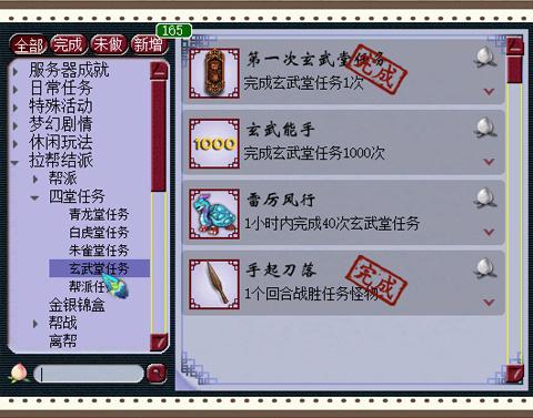 四堂任务之玄武堂任务:这个分支的成就点数总共是5点,小美认为,只要刷完1000次玄武堂任务,这个分支的所有成就也差不多都拿到了。