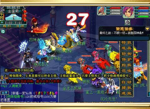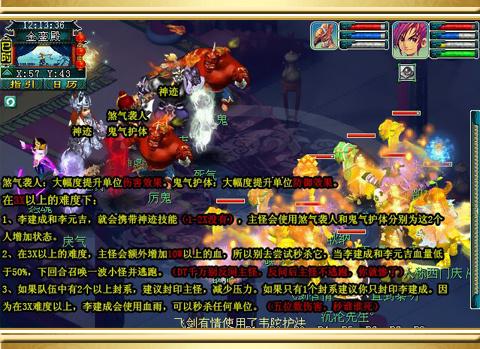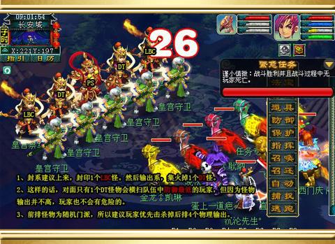 点评:但是在3X以上难度的时候,就不一样了,3X难度上主怪是不能强行杀的,必须先杀掉前排的小怪之后,然后主怪再次召唤出一组看似很牛X的怪(但是确实比较牛X),封系上来优先封印地狱战神,可以防止地狱战神烟雨剑法人物或宝宝。封印长眉灵猴也可以,但效果较差,因为封印法术后,照样有弱点击破点杀宝宝。人物上来,一定要集火攻击地狱战神。然后宝宝第1回合一定要防御,双保险,如果封系没有封印成功,防御状态下烟雨剑法是无法点杀掉宝宝的(只要地狱战神血量低于70%,攻宝宝输出就无压力)。第2回合,输出系配合宝宝可以攻击脚下有红圈的怪物。主怪同时也会受到伤害。当玩家喊话“四神鼎,防御减弱了,趁此机会攻击。。。 ”这时候直接攻击主怪即可,不用管红圈了。战斗胜利后,计斗四神鼎主线任务在这里就顺利完成了。