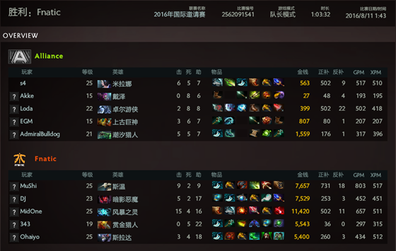 第一局A队拿了白虎加小黑的推进体系,但数据显示A队这一体系胜率极低,S4的白虎更是0胜4负。而本场比赛A队也没能改写命运,双方中期比分一直很接近,但A队经济早就被FNATIC拉开差距。斯温始终全场第一,领先A队大哥近两个大件,A队顽强守了几十分钟的高地,可惜未能翻盘,FNATIC先胜一局。