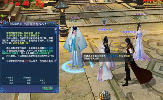 2。该关卡包含三个子任务,领取任务时,夫妻双方各会获得任务道具同心知意笺。其中一人将获得文字线索,另一人获得图片线索。右键点击使用同心知意笺,可将其中记录的文字或图片线索同时显示在双方的界面上。