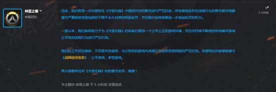 Blizzard 表示:‘我们将再一次对那些在《斗阵特攻》中使用外挂的账号进行严厉打击,所有被确认存在违规行为的账号都会根据情节严重程度受到包括但不限于永久停权的相应处分’,同时,官方强调,一直以来,Blizzard 始终致力于为《斗阵特攻》的玩家们提供一个公平公正的游戏环境,并且会持续不断地对所有破坏游戏公平性的违规行为进行严厉打击。