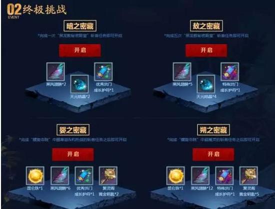 终极挑战!完成各项挑战即可获得相应秘藏,黑风八卦,昆仑武器唾手可得!