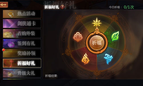 “祈福”是《剑侠世界》手游中的特色玩法之一,玩家可进行每日祈福获得相应奖励。记得每日登陆试试手气哦!
