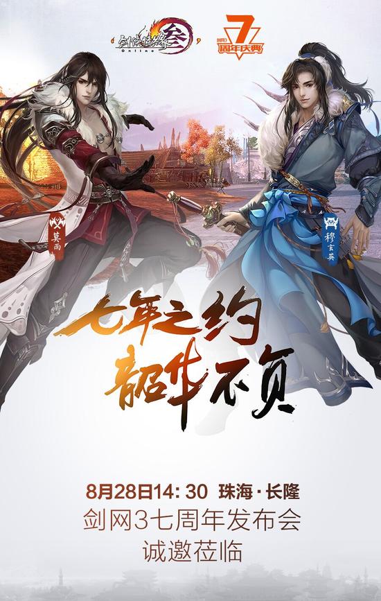 《剑网3》七周年发布会将于8月28日开幕,端游、手游、单机版海量爆料全网直播,并在现场提供官方手游《剑网3:指尖江湖》的试玩体验。本次发布会将对次世代引擎技术,IP泛娱乐内容进行全方位的曝光,除了西山居本土和北美团队的自研成果外,还有重量级合作伙伴加盟,内藏大量猛料,今日仅作预告,8月28日海量信息、图集、视频、现场试玩为侠士揭晓最终悬念。