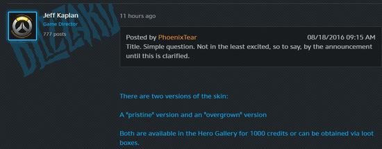 另外关于玩家最关心的“新皮肤能不能用金币解锁的问题”,暴雪也在论坛上给出了回复:新的莱因哈特传奇皮肤共有两种版本,都可以通过1000金币解锁,也能通过开箱入手。喜爱这款皮肤的玩家现在就可以攒一波金币了。