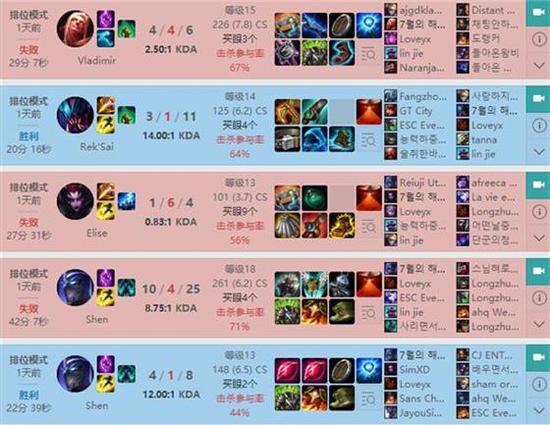 在前几日的LOL职业联赛季后赛中,EDG以3比2战胜WE,挺入决赛。但是,这场3:2的对局也着实让双方粉丝都捏了一把汗。赛后厂长可能是不满意自己比赛的发挥,进入疯狂韩服RANK训练模式!厂长目前处于大师段位100胜点,韩服排名670,雷克赛和蜘蛛的更是高达65%和63%!