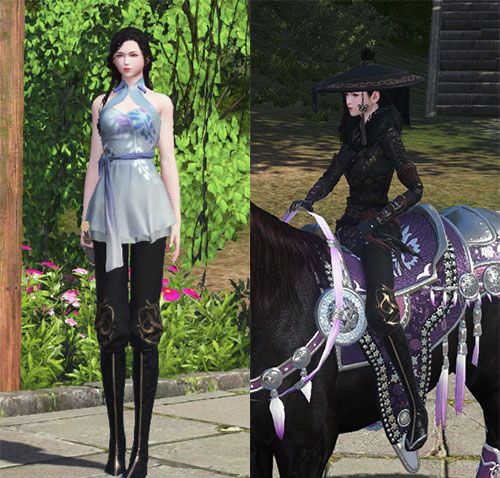 另外,其实也有一些其它的外装部件是可以当作打底裤用的哦!比如我不喜欢扶苏的黑色小内,然而配上从龙的下装也是不错的呀!这样才是真的古风侠客该有的风范吧!