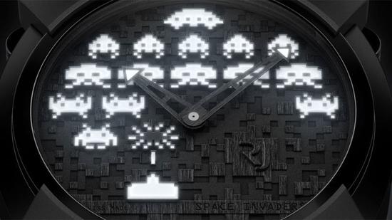 此前,Romain Jerome还曾制作过其他主题的手表,比如下面这款太空入侵者(Space Invaders)主题的手表。这款手表有两种,每种限量78个。