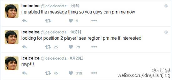而在今天中午(8月23日),三冰又发布推特说需要二号位,东南亚赛区,看来他就算不是去MVP战队,TI7之前也不会继续在中国打下去了。不过如果他是加盟MVP战队的话,现在竟然在找二号位,QO难道以后要转一号位了?还是说QO也要离开MVP战队了?现在一切都还是未知数,让我们静静等待最终的转会结果吧。