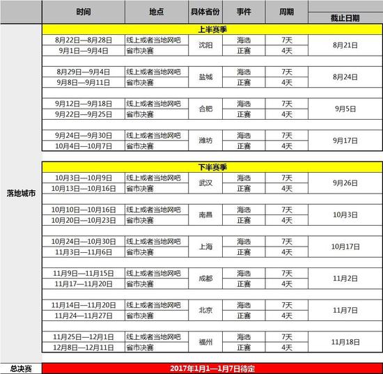 城市赛将在全国10个省市陆续展开最终十个城市的冠军队伍将晋级CIG2016全国总决赛将和来自高校赛的2支冠亚军战队、以及4支俱乐部战队组成16强,共同争夺CIG2016年度总冠军的荣耀奖杯和巨额奖金。