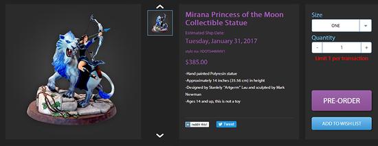 目前,网站已经开放预购,手办将于明年1月31日正式发售,购买这款手办的玩家可以在《DOTA2》的游戏中获得道具坐骑“月云”,不少死忠粉也许会看在坐骑的份上剁手入一件。