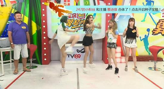 全民TV主办的奥运特别节目《全民奥运翼起约》在每一个里约奥运比赛日的晚上,由专业体育频道主持人译男和众多美女主播们相聚在直播间,和大家回顾奥运精彩的赛事集锦,分享各自的故事,通过游戏和惩罚环节拉进与观众的距离。8月18日张倚嘉、楚琰、顽强的汤团、小婷婷热辣来袭,现场解锁新姿势,比拼摔跤技能,输掉的一方竟然要吃洋葱,画面真是辣眼睛。
