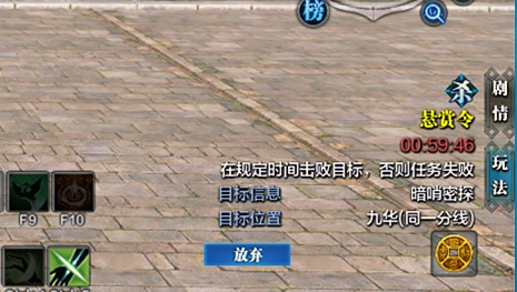 接取到暗杀之后,屏幕右侧会出现如下画面,如下图的任务地点在九华,则需要飞到九华。