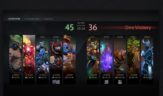 同时此次更新之后还增加了赛后总结,可以从玩家和团队表现的多个不同方面查看非常详实的报告,解析整个游戏进程,将关键的转折点直观地表现出来。过往所有比赛,包括各项锦标赛比赛的总结也会存档,以供翻阅。其中还包含了概览,面板,图表和队友数据等页签,方便玩家更系统的进行赛后总结。具体的计分板信息可以登陆//www.dota2.com.cn/darkrift/或直接进入游戏客户端进行查询。