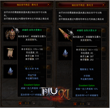 从卓越的血色天使和大天使武器属性对比可以看出,本次新版本的血色天使在攻击力上明显高出了许多,但在使用要求上也相对高一些。